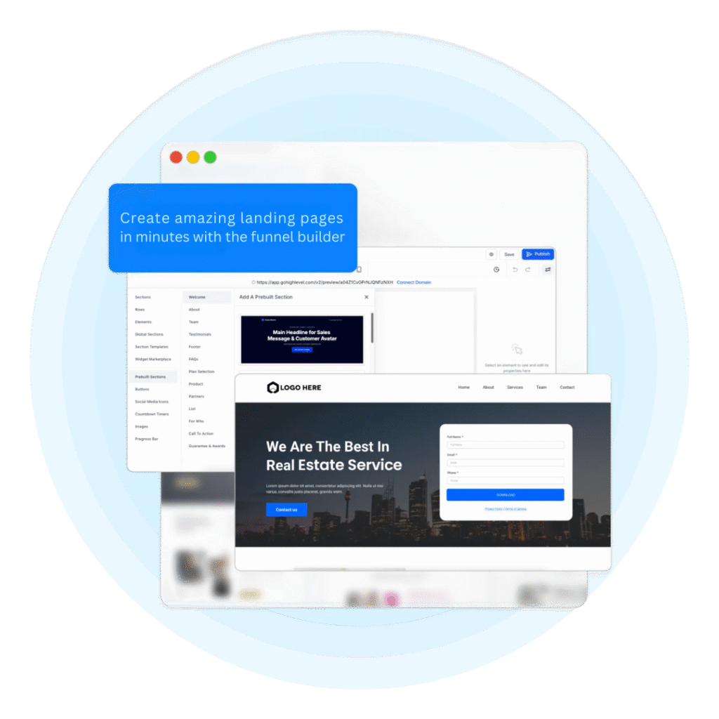 Create Full Websites, Funnels & Landing Pages Our intuitive platform allows you to create full featured websites with custom menus. Create high-performing and captivating landing pages all in one place!